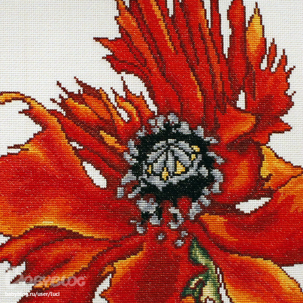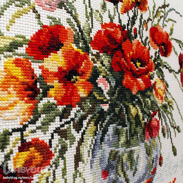 А это уже МОЯ самая первая работа, которую я все-таки успела доделать, из того огромного списка (который я кстати мысленно увеличила уже до 100 работ(((), который я себе запланировала на всю оставшуюся жизнь. Маки очень яркие и жизнерадостные. Прям настроение поднималось и когда я ее вышивала, и когда сейчас любуюсь))