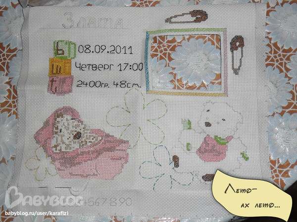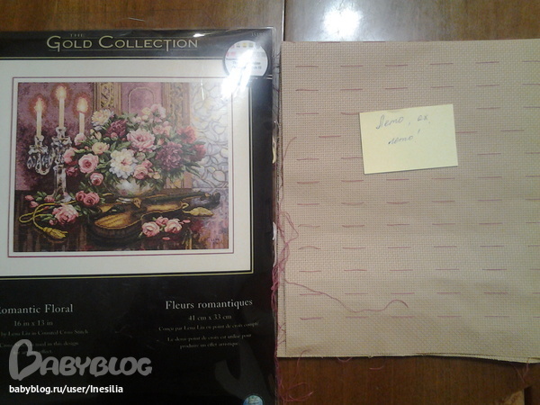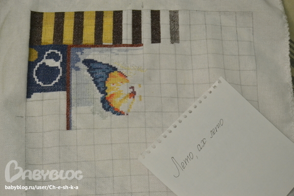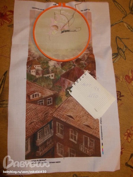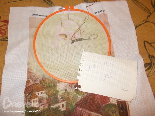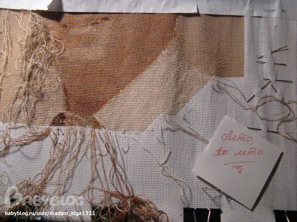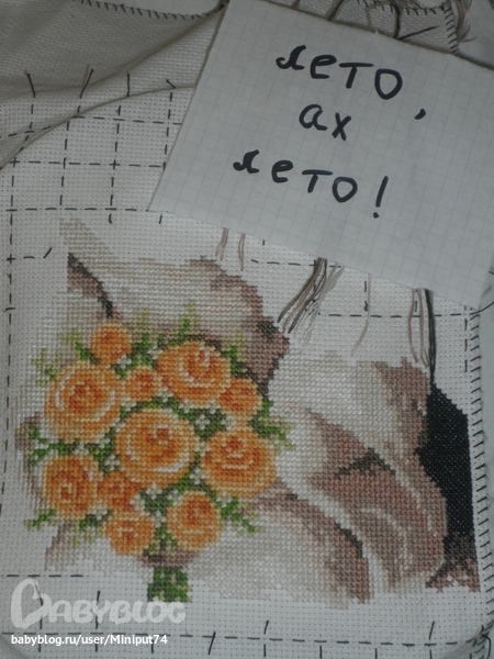 Когда распечатывала схему "выпали" по 10 крестиков с боков, поэтому канва оказалась впритык(((( Хотела бросить, но стало жаль потраченного времени, поэтому решила дошивать как есть.