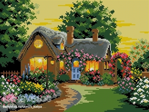 Александра, схемы ищут в другой категории - и схемы с этим домиком выкладывали не однократно.