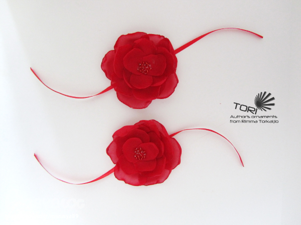 у меня был заказик цветы для пантолеток,две пары цветов,чтобы их менять я их сделала на ленточках)))