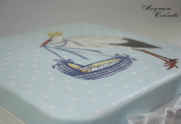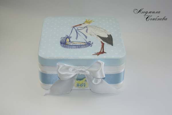 Как здорово!!!! А я как раз в процессе шкатулочки для будущей мамы как раз для этих же целей))))) Спасибо за идею с ленточкой
