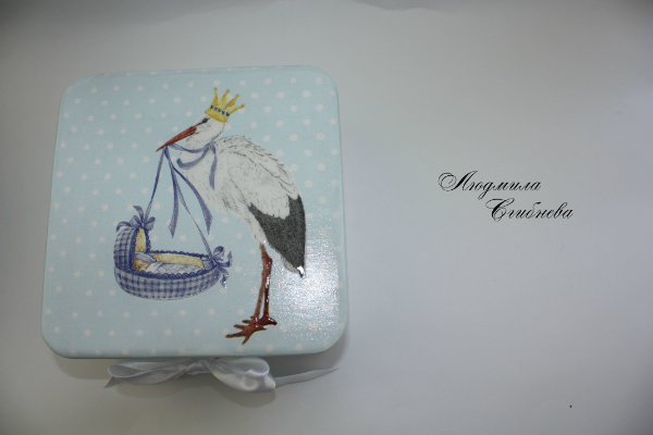 ДекупажВот такую шкатулочку сделала в подарок подруге, она недавно стала мамой :)