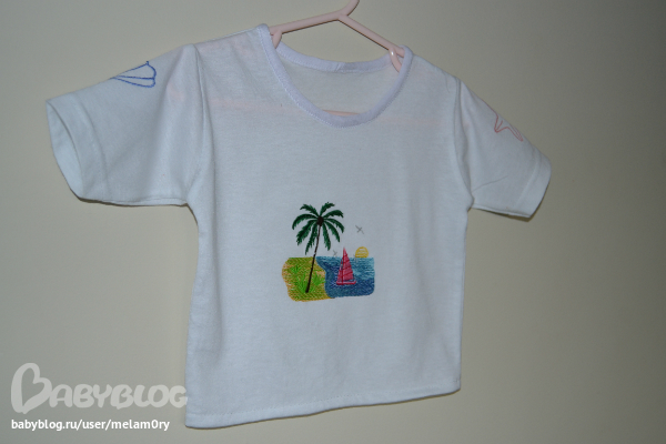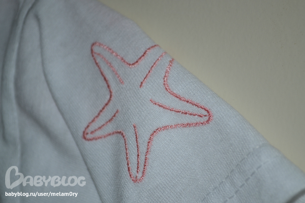 я еще с изнанки клеевую припарила, чтобы вышивка дитю пузо не царапала, но она так же помогает держать форму рисунку. хотя, конечно, делает его жестче.