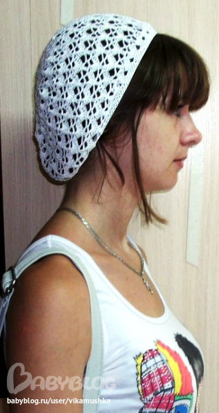 Связался за ночь))))Фоткали на мне.Даже мужу понравилось,а он не особо любит,когда у меня что-то на голове ))))Красивей все-таки смотрится,когда волосы в него убраны и есть челка