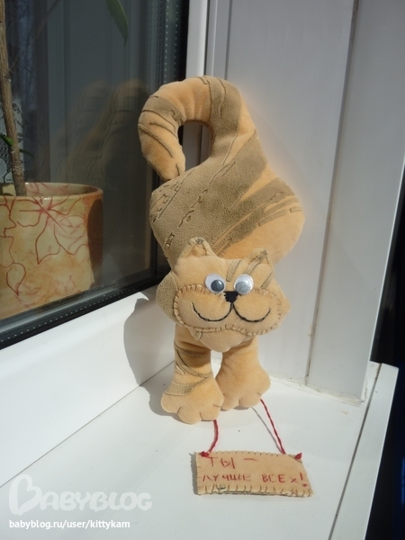 Шитье одежды, выкройки, ремонт одежды, шторы, швейные машины (уже приобретенные)Еще в апреле сшился котик в подарок одной хорошей рыжей девушке, моей любимой подружке! Она участвовала в конкурсе "Мисс Весна" и был подарен перед ним для поддержания боевого духа! Сшит полностью вручную. Ей очень понравился!