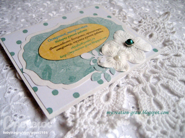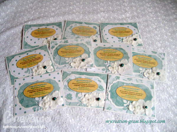 Рукодельная визитка-классная идея! Я вот себе пока только цыфровые заказала, не печатала правда еще, хочется их в качестве благодарности за заказ вручать покупателям. А такие — это вообще шикарно!