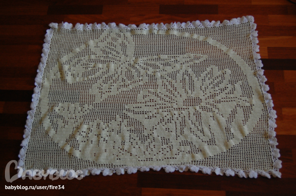 Это плед! Размер получился 107 см на 72 см. Я думала, кстати, что филейку - раз-два, и готово. В результате к концу работы я уже ненавидела этот плед, мечтая только о том, чтобы никогда его больше не видеть. А ведь еще один надо вязать - сыну...