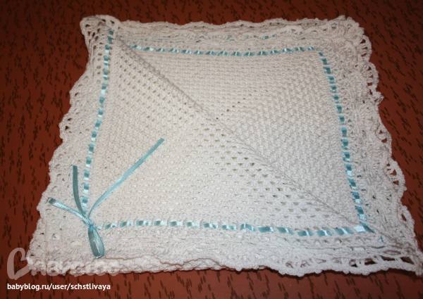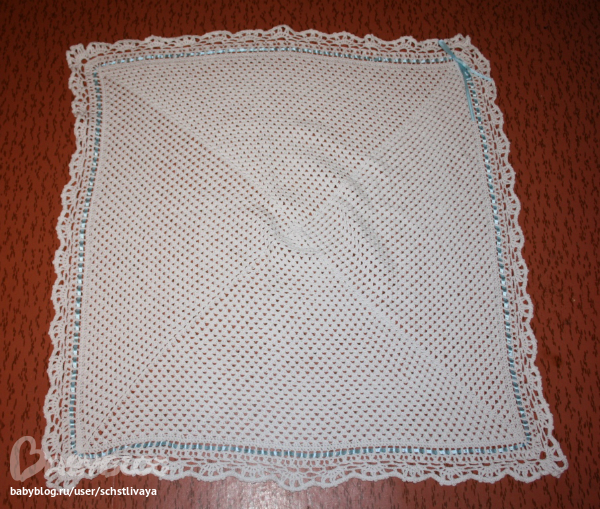 Вдохновленная вашими работами, связала младшему сыну пледик на выписку. В нем нас забирали из роддома )))