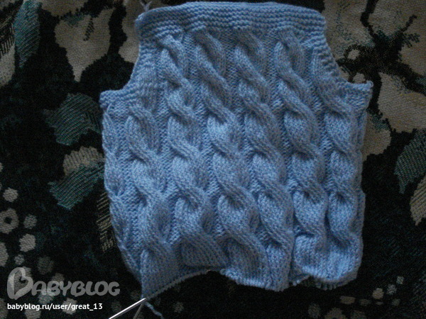 это мой окончательный вариант. нитки ализе бебе акрил. на самый большой размер в описании ушло полтора мотка голубого и чуть больше половины белого по 100гр. спица 3.5.носим до сих пор.нам 4года рост 110(это для ориентировки размера)