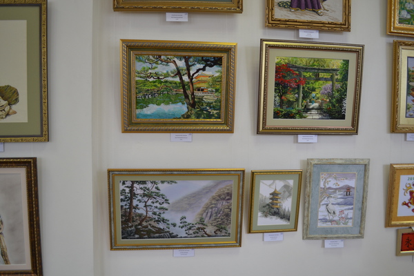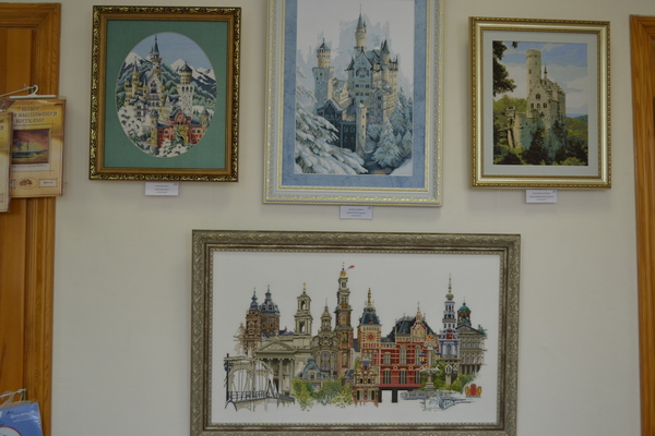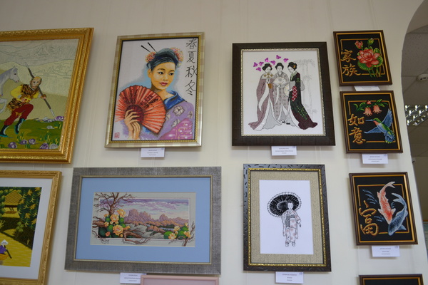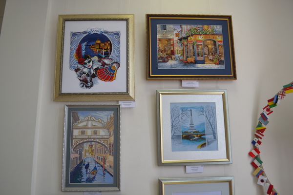 вот такая небольшая экскурсия по выставке.на вото представлены далеко не все работы. к сожалению,для большинства картин не могу сказать,чьи это дизайны(((на выставке это представленно не было,а на мой вопрос к сотрудницам-мне было "по-доброму" сказано,что производитель указан на обратной стороне и мне они,его естественно,не скажут-не та цель выставки))