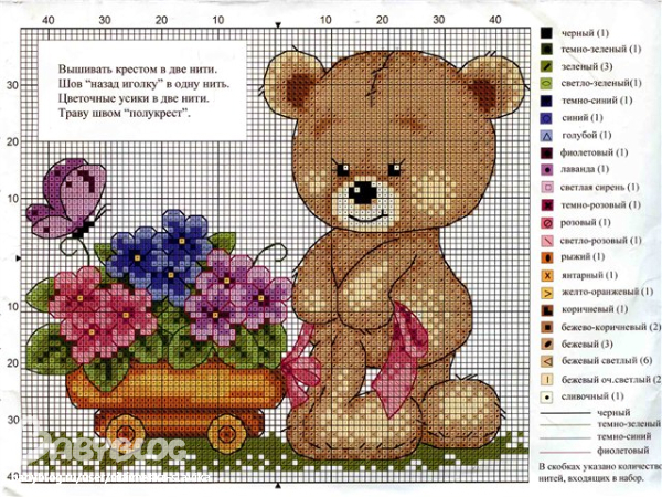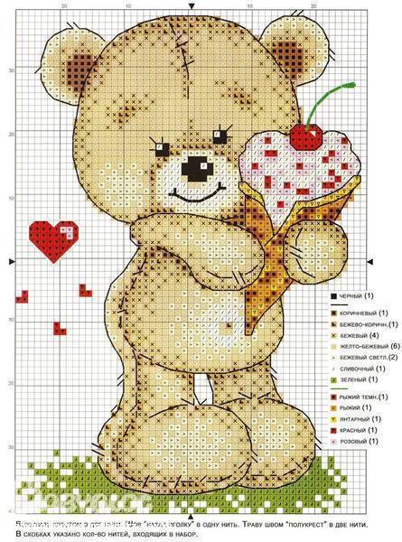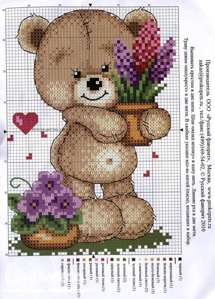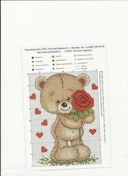 у меня мишка с розой есть новый набор (схема+канва+нитки), открыла только сейчас, чтобы схемку отсканировать, могу отправить почтой (почтовые расходы+150руб.). если интересно, то пишите