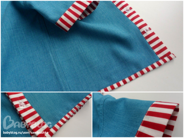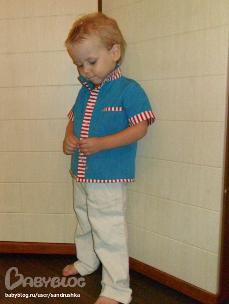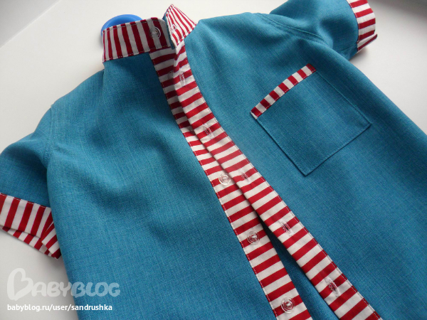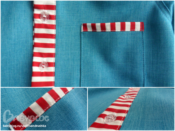 Шитье одежды, выкройки, ремонт одежды, шторы, швейные машины (уже приобретенные)Для Лёни. Ему редко перепадает одежка от меня. Долго я вдохновлялась на рубашку. У меня ведь и выкройка готовая лежала с того года еще. Но все что-то никак. А тут прикупила отрез вот такого габардина цвета морской волны. Сразу решила, что это будет рубашечка, но обязательно подберу к нему какого-нибудь американского хлопушка из своих скромных запасов ))) И я даже не предполагала, что выберу именно эту полосатую ткань. В целом кусочке от этих полос так и рябило в глазах. Но она так здорово подошла к синему, такое сочетание получилось морское, или я бы даже сказала курортно-яхтное ))