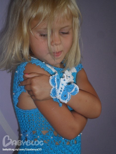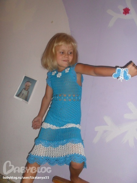 вообще это платье вязалось на девочку 7 лет. модели 4 года. платье должно быть до колена:)