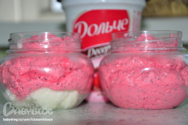 у меня старшенькийц залез в холодильник,взял ложку...и спрашивает,мама а что это?))))))))))))Я вот что заметила,если добавить совсем чуть -чуть сахара,он получаеться как мусс или как взбитые сливки,нет как суфле.а чем больше сазара,тем твердее)))))