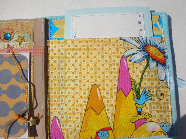 Обложка мягкая, вот только ткань меня подвела (( Тканюшку немного покрасила белой и оранжевой акриловой краской.