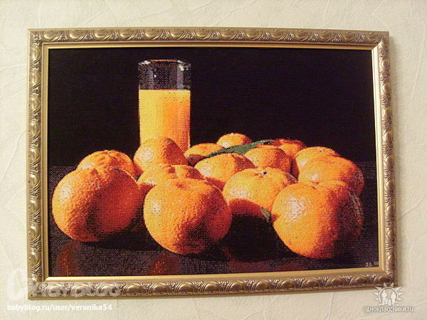 Мне больше всего апельсины понравились, но я вообще не люблю натюрморты и цветы вышивать. Вернее цветы иногда вышиваю, но только в подарок. А фрукты ни разу не вышивала.