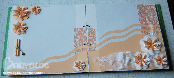 Это подарок на свадьбу - да. Но я не позиционирую его как свадебный альбом 8)) И предыдущий тоже.. Специально делала нейтрально. На мой взгляд свадебные альбомы все-таки надо от фотографий начинать делать... но я пока так не пробовала, боюсь испортить.. 8)