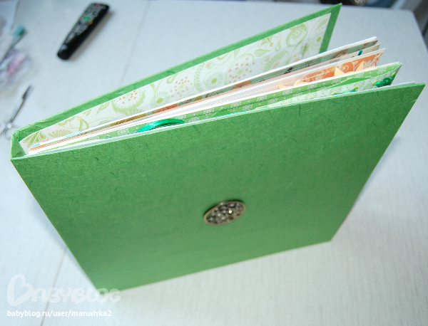 Как и в первом в качестве обложки взята простенькая тетрадь с кольцами, и обклеена-надставлена картоном до нужного размера. Фото предполагается располагать под прозрачной пленкой.