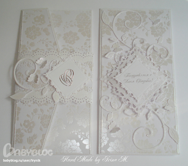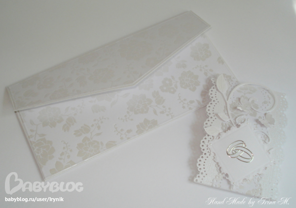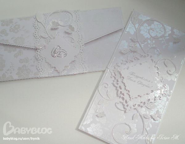 СкрапбукингОчень срочный заказик, свадьба завтра. Было решено сделать все в классическом свадебном стиле и цвете. Открыточка стандарт и конверт для денежного подарка. Все в белоснежно-серебряных тонах.
