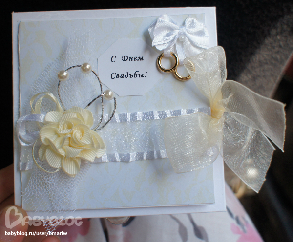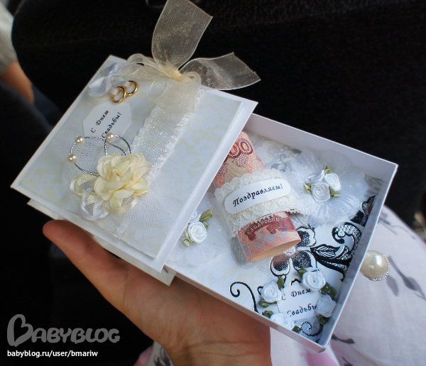 Я бы тоже не отказалась такую на свадьбу получить, в сто раз лучше чем обычные открытки и конверты. Сделала и так жалко было ее отдавать, так как первая и мне очень понравилась, но мысль о том что она не последняя, меня успокоила и я отдала ее, я думаю им такой подарочек понравится и запомнится ))))