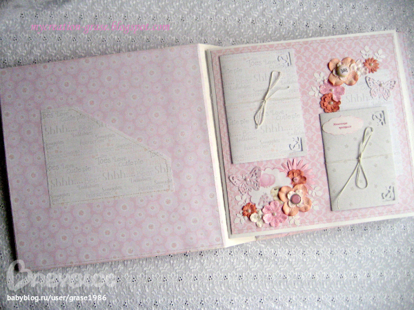 А здесь "гормошечка" с прозрачными кармашками для трех УЗИ-фото (жаль, моя мини-фото лаборатория не дает возможности показать их полностью в развернутом виде))))