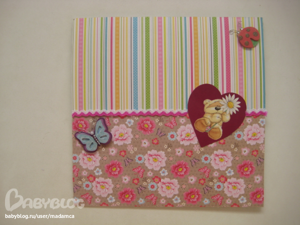 Скрапбукингох девочки каждый день любовалась красатой. имею ввиду альбомы для детей. такие они красивые и решила сделать сначала дочке такой памятный альбомчик только вот в нашем городке не найдёшь ни чего хорошего((( купила я всё что смогла найти и приступила к работе . и вот что из меня вышло
