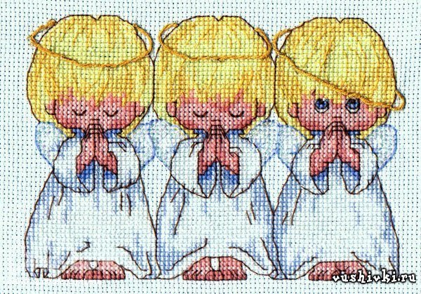 Вышивка называется "Почти идеальный",тк. 2 ангелочка идеальных,прилежно молятся,а третий почти идеальный,т.е. он тоже ангелочек,но вот нимб съехал и глазки приоткрыл,и на ножках переминается)))) Отсюда и название))