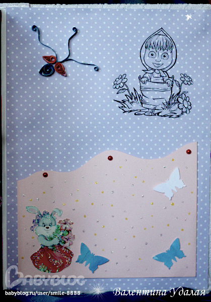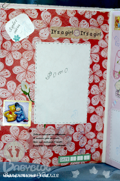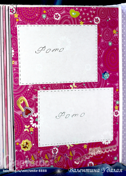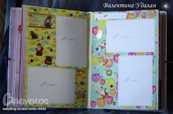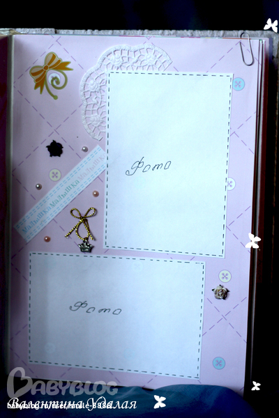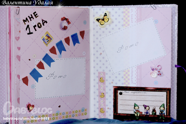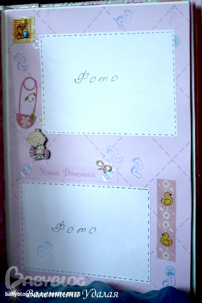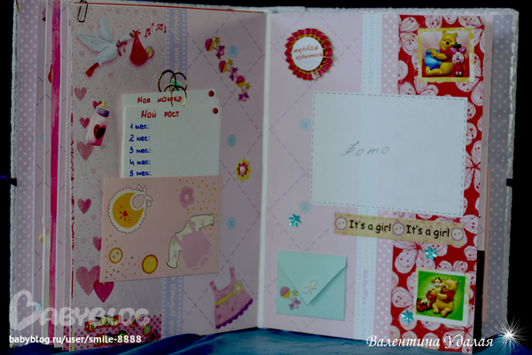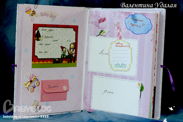 И последний 11 разворот. Здесь можно вклеить фото любой тематики, а справа есть конвертик, в который можно положить фото которые не поместились в альбом, или например записочки с интересными моментами, или первые рисунки малышки, в общем все что хотите.