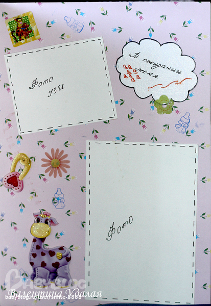 страничка №2 в первом развороте "В ожидании меня". На этой страничке предполагаются фото УЗИ и беременной мамочки.