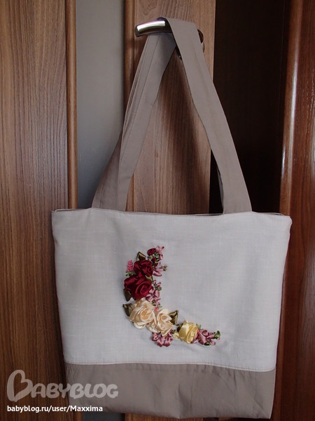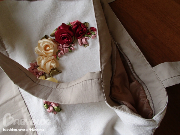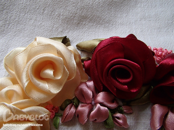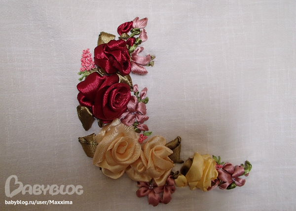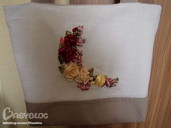 Расшила атласными лентами и бисером.