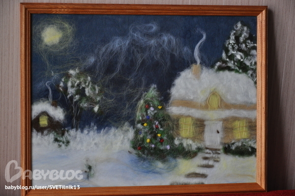 Машенька спасибо большое, я очень старалась для мамочки с теплом и любовью, рада, что это читается, надеюсь ей тоже понравится...(это ее любымый сюжет новогодних открыток)....все таки работать с шерстью очень приятно, столько всего можно творить и вытворять....присоединяйся, я уверена у тебя тоже получится..