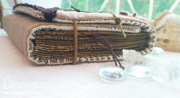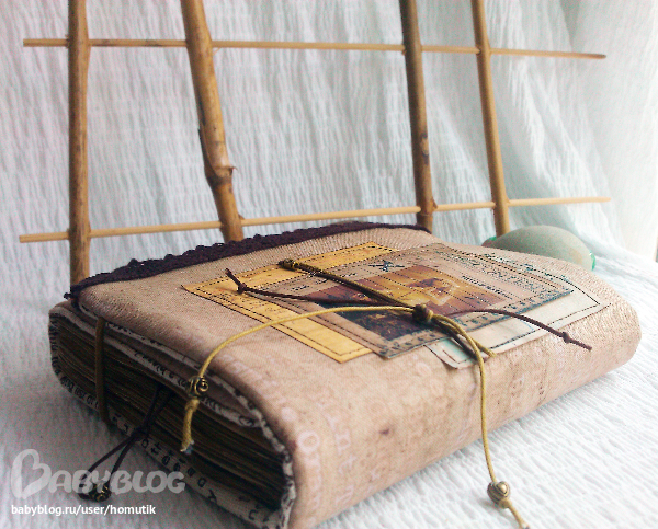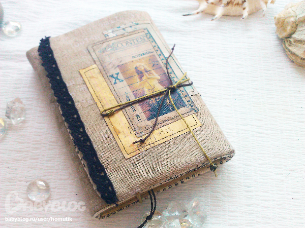 СкрапбукингСофтбук с нуля. Формат А6. Блок из бумаги плотностью 65г/кв.м., 144 листа (288 стр.) тонирован-ароматизирован вареным кофе, некоторые страницы украшены штампами. Обложка мягкая, комбинированная: внутри качественная льняная ткань, снаружи корейский хлопок, обложка проложена синтепоном. Закладка вощеный шнур с бусиной из металла. Обложка декорирована бусинами и картинками, они состарены, прошиты и покрыты лаком на водной основе. Софтбук закрывается на резинку. До отпуска это предпоследняя работа.