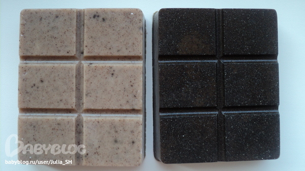 мыло-скраб шоколад. Темный шоколад с натуральным кофе, молочный шоколад с натуральным какао