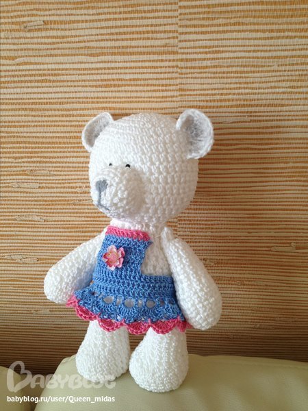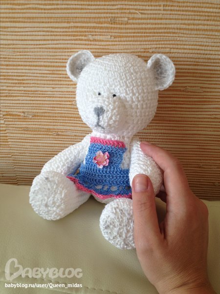 Вчера муж сообщил об очередном нашем переезде на дачу и тут я вспомнила, что обещала своей младшей племяшке связать мишку! Так как моего "первенца" выклянчила старшая. И вот что получилось