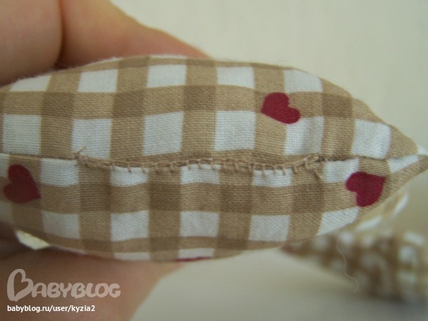 И достаточно сложный для первой игрушки - вон какой узкий длинный хвост, его сложновато набивать (обычно набиваю спицей одновременно с выворачиванием).