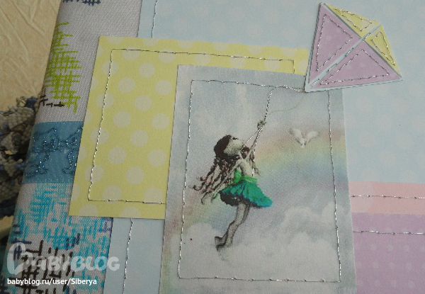 Обложка вот такая - мягенькая и блестит. У девочки в руке действительно серебристая веревочка, которая тянется к воздушному змею.