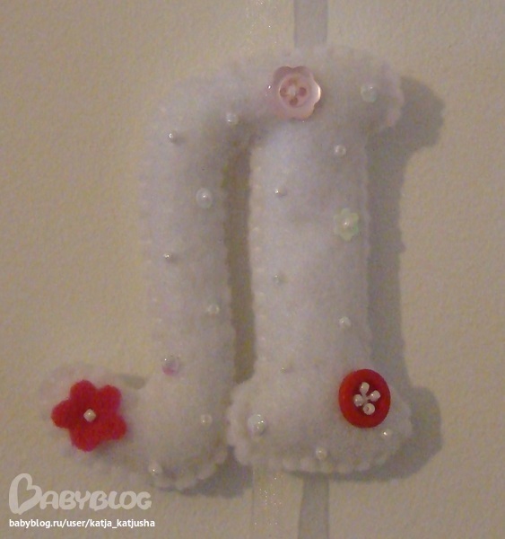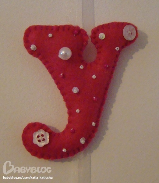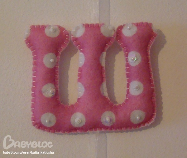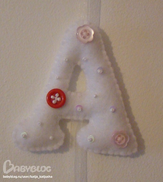 Буквы из фетра. Совет на будущее: когда вырезаете уже буквы из фетра, оставляйте зазор на 1-2мм больше ткани, чтобы при сшивании и набивании буквы получились не худыми.