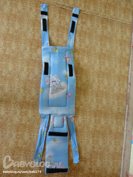 а как вы ремни от коляски в готовые прорези вставляли? и что за клиенка у вас на "стульчике", а то на фото ее совсем не видно?