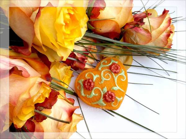 Спасибо! Это все цветы виноваты) Они такие яркие) Даже не думала что вязанное сердце сделаю оранжевым, когда смотрела на него все думала про темные тона, а тут вот взяла и сразу поняла что хочу оранжевое)