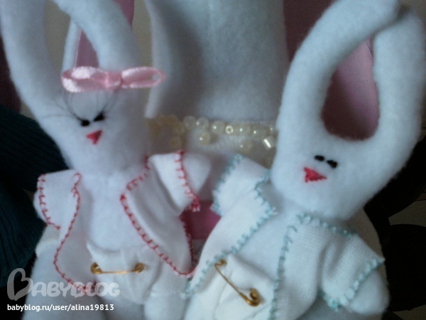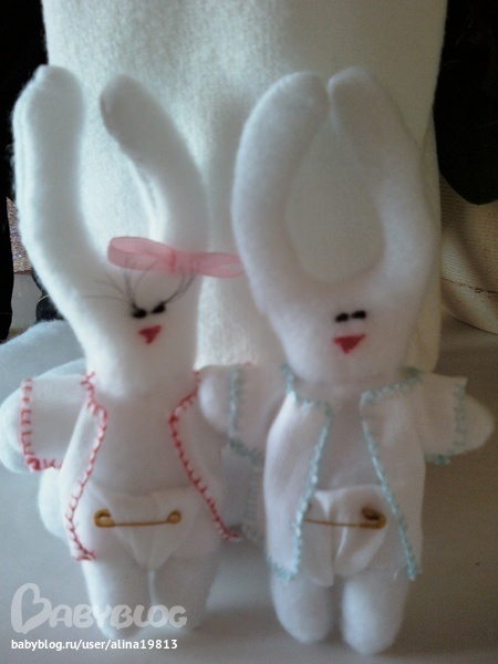 Игрушечный мир - животныеСшила на заказ новую парочку. Знакомьтесь, господин и госпожа Ушастовы с детками:)) У господина Ушастова кочан капусты, как и полагается, а у госпожы Ушастовой красивое платьице, расшитое старинным жемчугом. Двое деток - мальчик и девочка, их подгузники держат золотые булавочки. Вот такие богатеи:)) Зайки стоят самостоятельно, сидят, лапки поднимаются, можно наклонить головки друг к другу. Принимаю заказики, недорого.