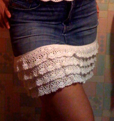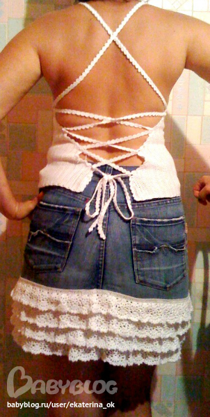 Долго я не решалась связать крючком что-то для себя... и вдруг нашла в просторах интернета переделку... джинсы превратились в юбку... ( http://www.liveinternet.ru/users/3888354/post177312398/ )