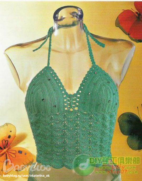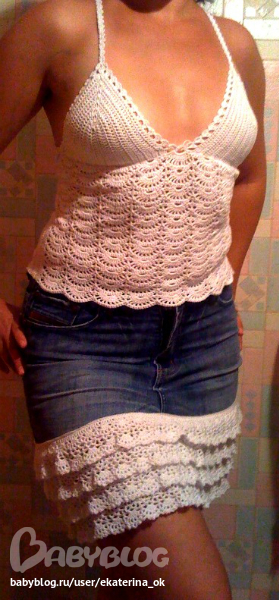 После того, как связалась юбка я решила связать топ.. после долгих поисков остановилась на таком варианте... (оригинал)
