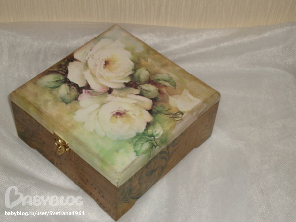 Светлана в Рукоделие 13 лет мой декупаж Декупаж Посмотрите еще 20 записей на эту тему Отменить Ответить Vikusich Красивая шатулочка, очень приятные и нежные тона! 20.08.2012 Ответить Юлия нежная шкатулка! красивая. Только хотелось бы ещё сбоку рассмотреть:) 18.08.2012 Ответить Светлана Спасибочки!!!! 18.08.2012 Ответить Алёнушка Классная шкатулочка! 18.08.2012 Ответить Светлана Благодарю за внимание к моим работам!!!! 18.08.2012 Ответить ~Юлия~ Красота!!!!! 18.08.2012 Ответить Светлана Большое спасибо!!!!! 18.08.2012 Ответить Виктория Очень красиво!!! 17.08.2012 Ответить Светлана Благодарю!!!!! 18.08.2012 Ответить Sanechka Какая красивая!!!а опишите, пожалуйста, подробно, как вы ее сделали? у меня пузыкиками лак идет, может, я что-то не так делаю? 17.08.2012 Ответить selma И мне очень понравилось! Розы такие обожаю... 17.08.2012 Ответить Светлана Спасибочки!!!!!! 18.08.2012 Ответить Олеся Очень нежно))) Обожаю такие розы.... и ноты......ММММММ)))) Впишется в любой интерьер) КРАСОТА!!! 17.08.2012 Ответить Светлана Большое спасибо за отзыв!!!!!! 18.08.2012 Ответить подставка под бумагу "Южное море" "Домик в деревне") Чаты Беременных Выберите чат: Январята-2026 Февралята-2026 Мартята-2026 Апрелята-2026 Майчата-2026 Июнята-2026 Июлята-2026 Августята-2026