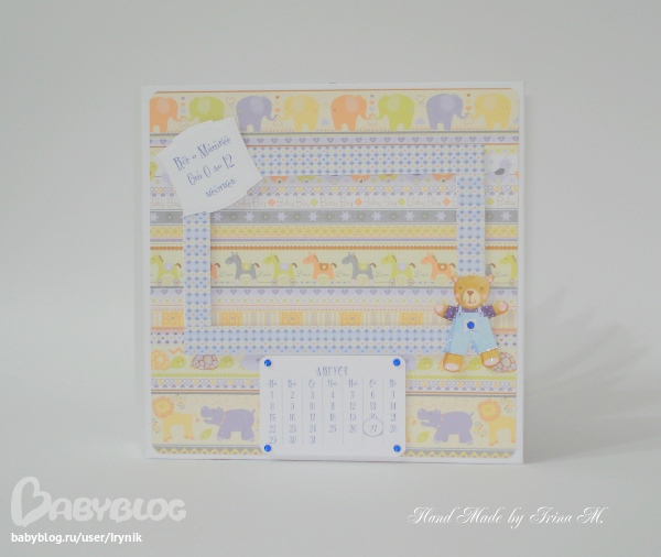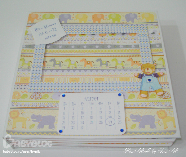 На титуле календарик с датой рождения малыша и место для вставки фото (размер 10х15).