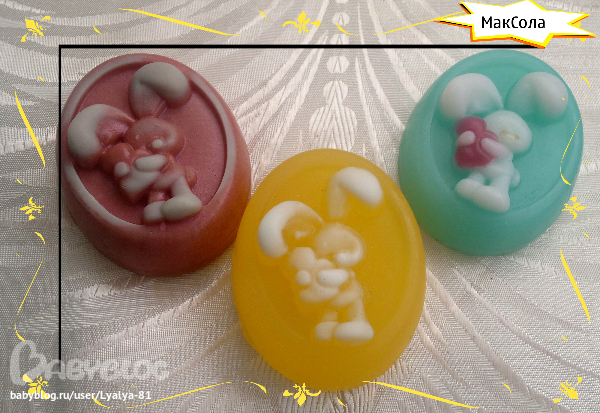 Мыло-зайки. Масла жожоба, макадамии, виноградной косточки. Отдушка Млечный путь, скромный жасмин, виноград и киви.