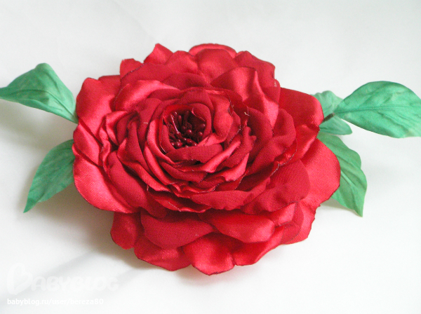 Дала мне подруга розу, которую дарила я ей, когда еще только начинала заниматься цветами.Попросила заколку к ней приделать.
