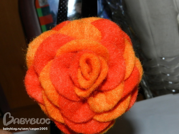 С фетром в этом плане работала впервые, поэтому взяла фетр попроще, чтоб не жалко было. Хотела две резиночки, но розы получились абсолютно разные, поэтому вышли ободок и резиночка (типа комплект)