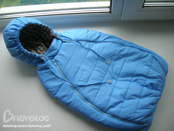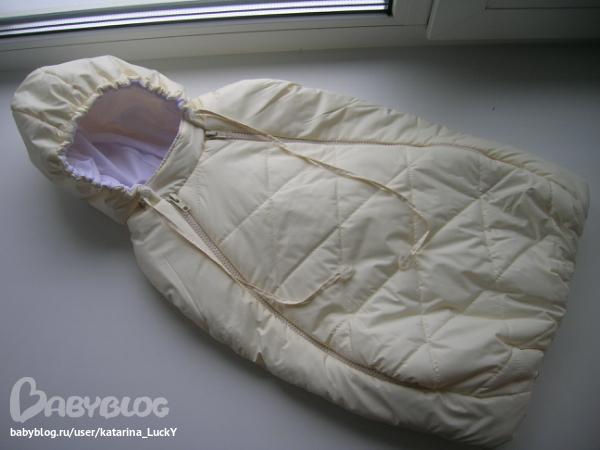 Шила такой кокон своему сынуле, только зимний. Пользовалась с рождения до 3 месяцев. Просто спасительная вещица для мамы - одевание/раздевание малыша не занимает много времени, ребенок и опомнится не успевает))))