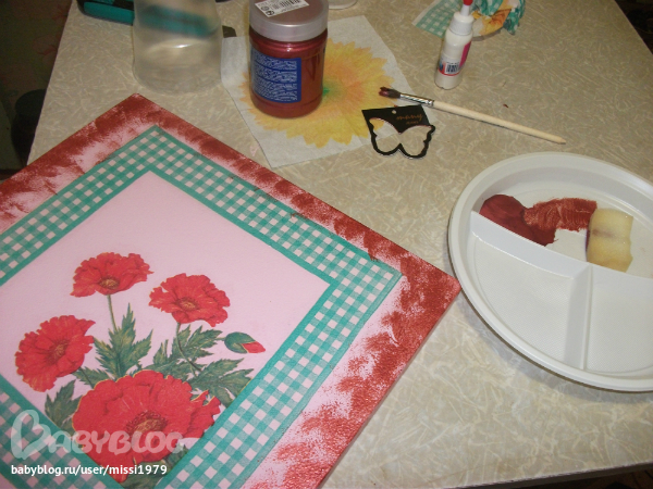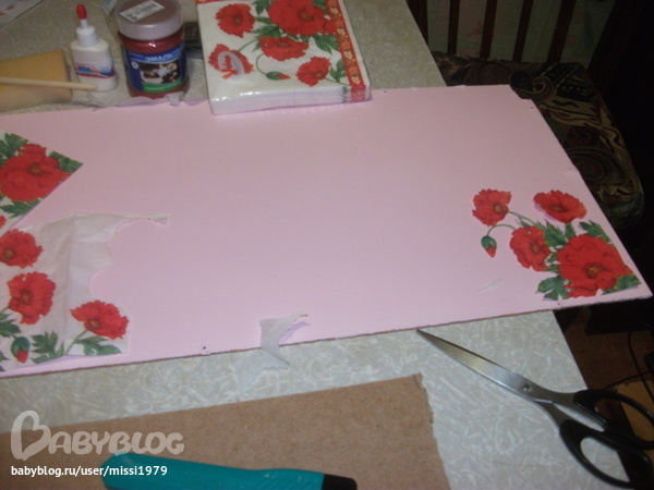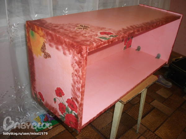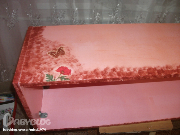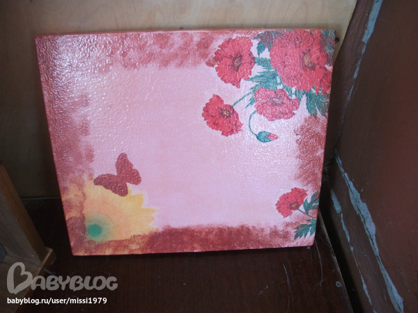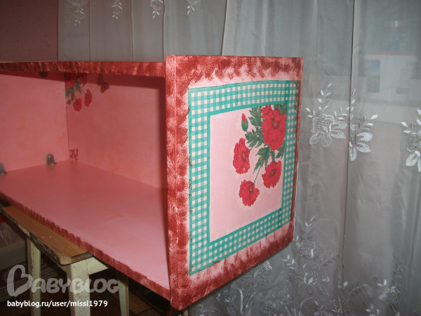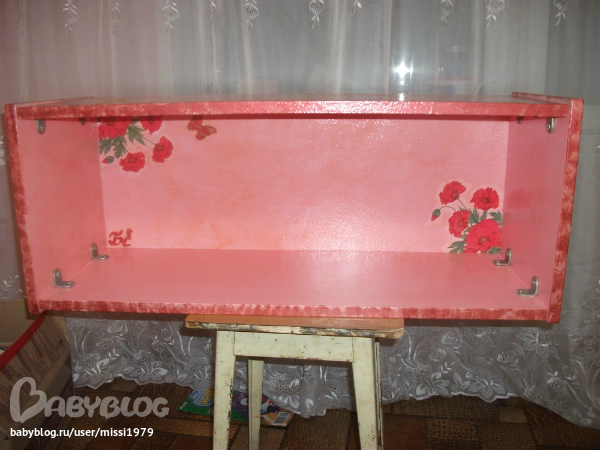 ДекупажБыло у меня 2старых книжных полки,одну из них решила модернизировать.Вот как это было: