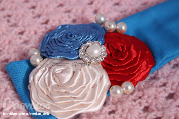 Marussia, которая скоро будет отмечать свой первый День Рождения! Повязочка должна была быть в тон к праздничному платью....Я очень старалась.....и вот что получилось....:)))